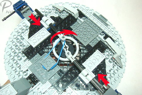 轉動背上圓盤,兩側橫桿會向內縮