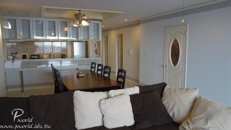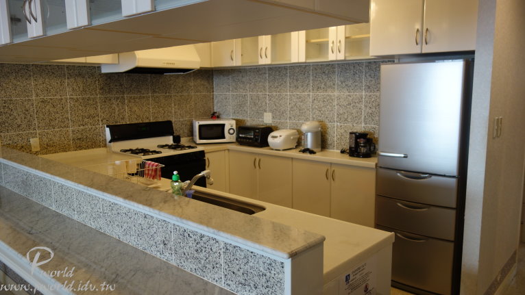 附近除了公寓還有一些獨棟的房屋 環境清幽 旁邊就是海邊 真是一個好地方 我們這一棟名稱是Chateau La Mer 3 公寓入口處也有販賣機(真棒) 進出公寓有門禁管制(雖然每次回來大門都沒關) 有電梯(網上說有些公寓是沒有電梯) 房間門是用密碼鎖(不知道退房時有沒有改密碼) 一進門 哇!哇!哇! 好大間 好大的廚房 好大的餐廳 好大的客廳 怎 麼 這 麼 大 間 啊