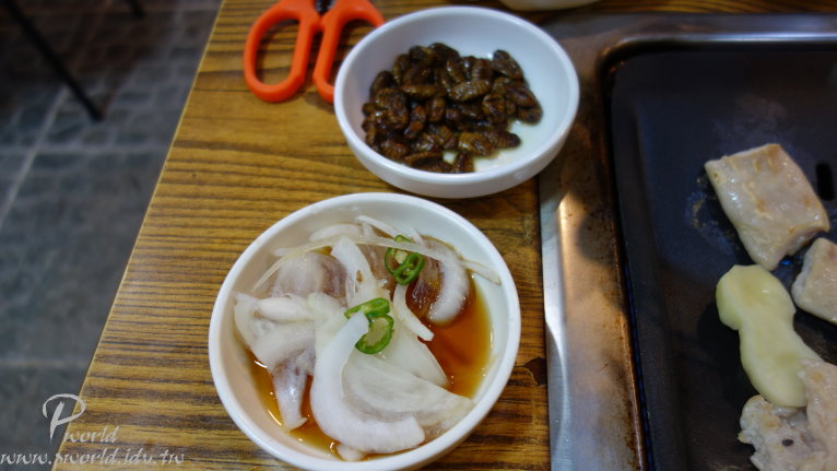 在台灣小菜裡會有豬腸也有大腸(好吃)