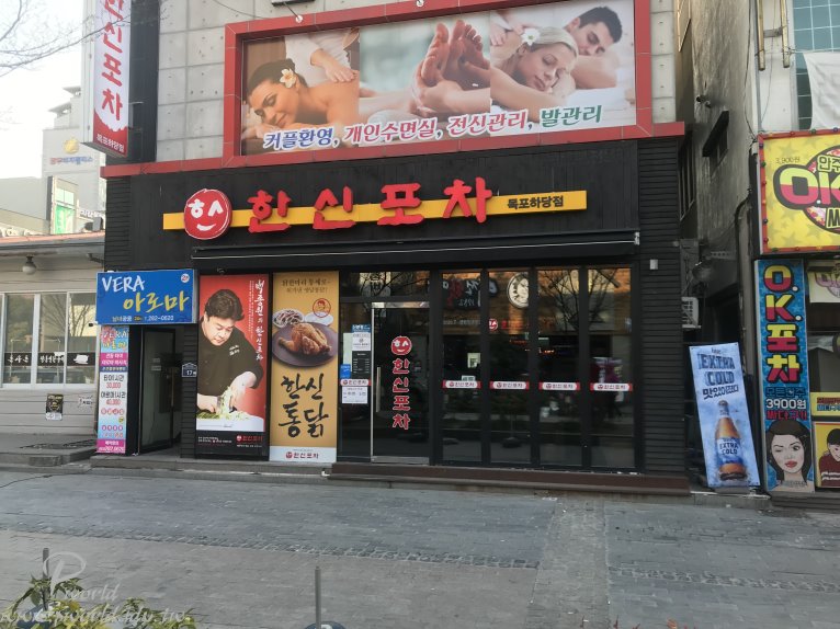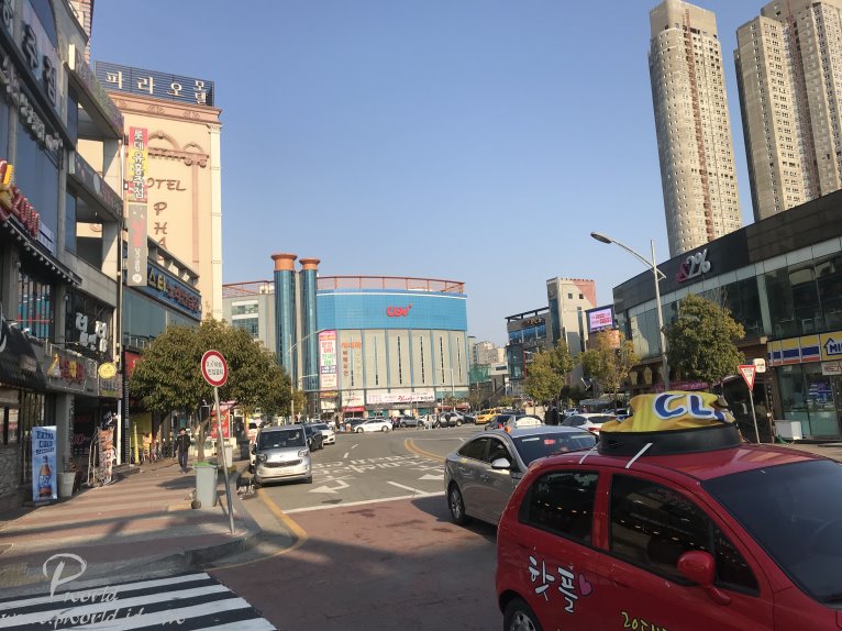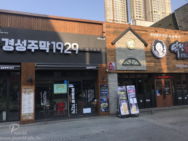 逛完木浦火車站附近後再搭計程車回到下塘和平廣場 白天的下塘美食街一帶好像比較少人 也是 附近看到的都是餐廳(或是旅館) 沒什麼商店 附近是有電影院、樂天超市 如果是想要逛商店 那就要往相反方向才有