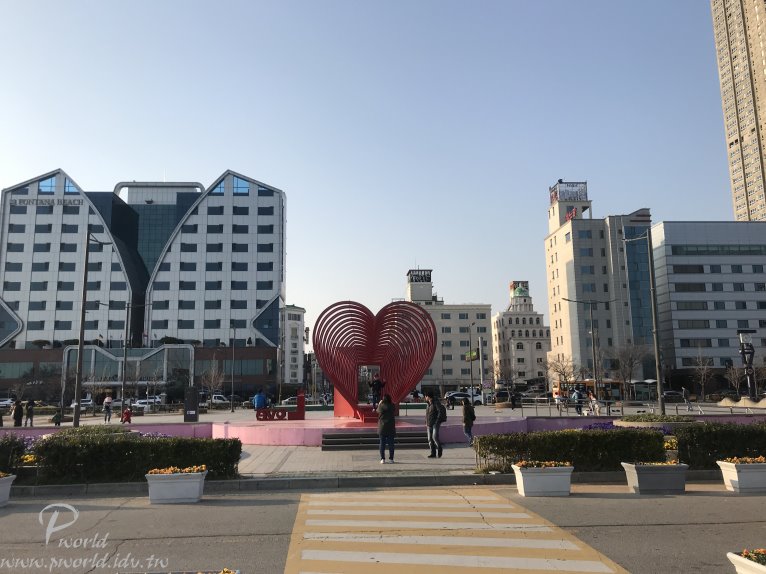 我們跟著心型裝置藝術來到港邊 廣場上還有一個更漂亮的心型裝置藝術 情侶們很適合來這裡(放閃放到死)
