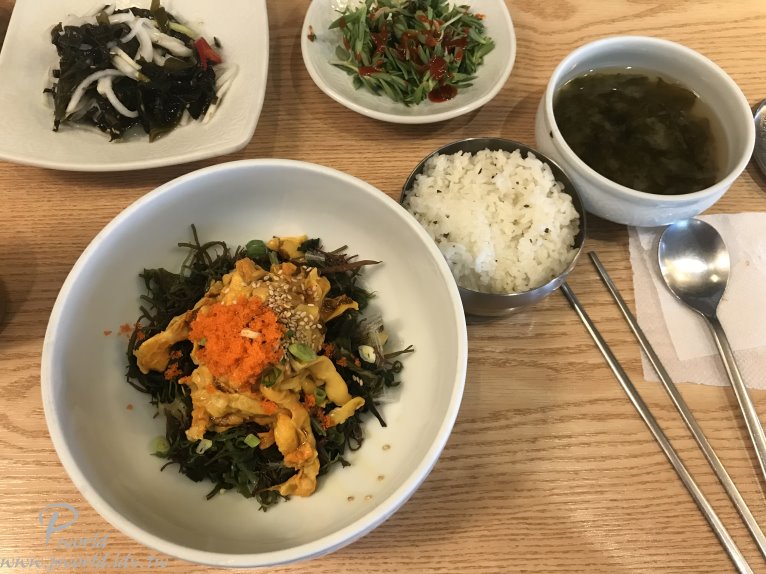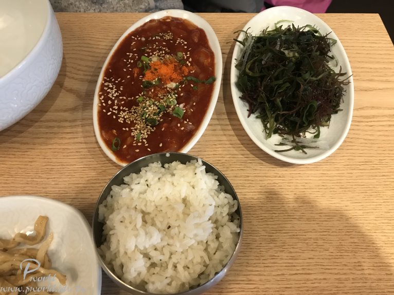 我們點了兩道拌飯 一道是招牌花蟹拌飯、另一道蛤蜊肉拌飯(網站資料翻譯) 紅通通的一大盤 不會都是辣醬吧 花蟹肉都藏在裡面 看起來不錯喔