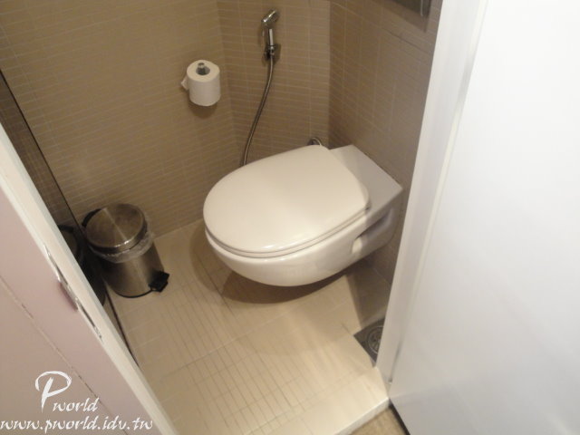 玄關右邊有一間小小的廁所 真的是小小的 胖一點的人小心從馬桶起來的時候不要撞到前面的鏡子