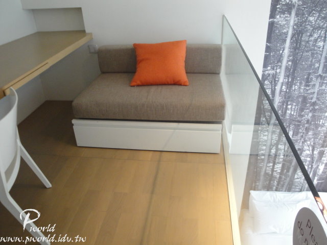 樓梯上去就是最特別的地方 一上去可以看到書桌和沙發