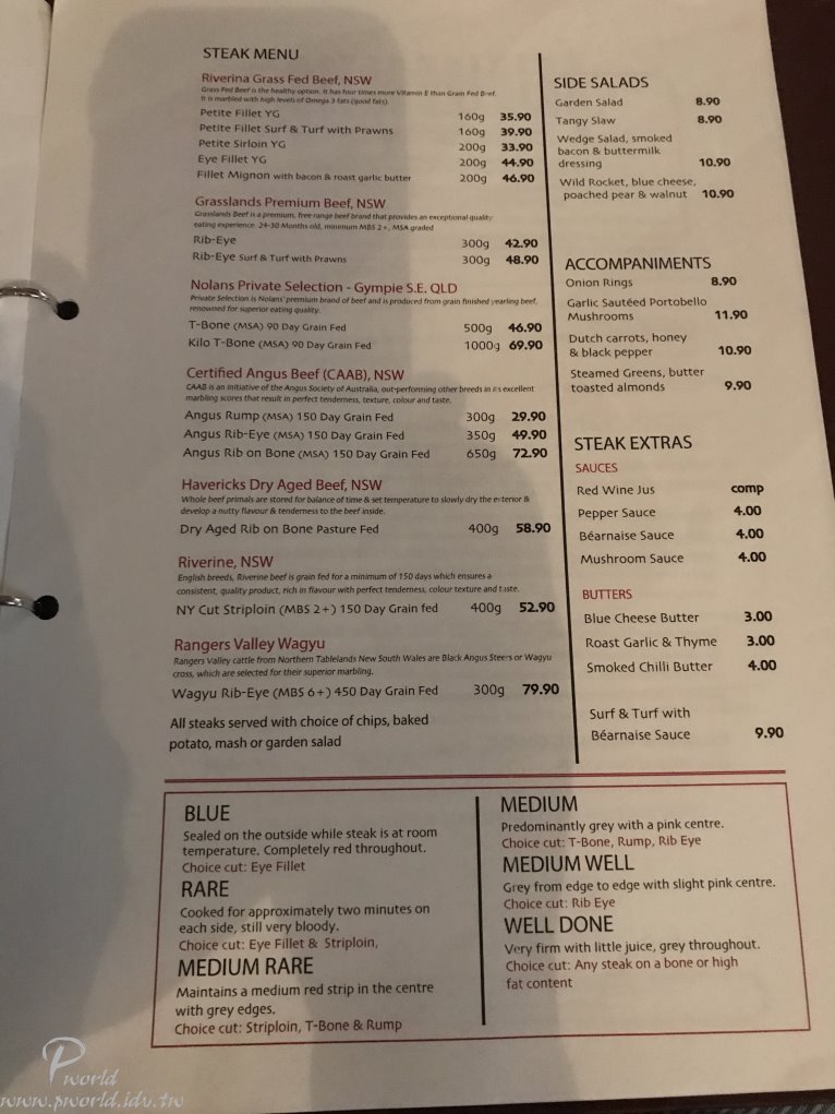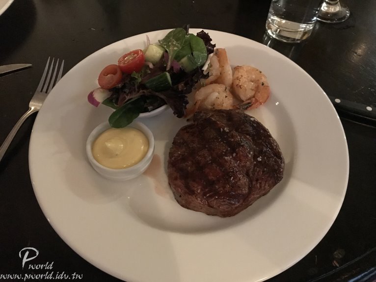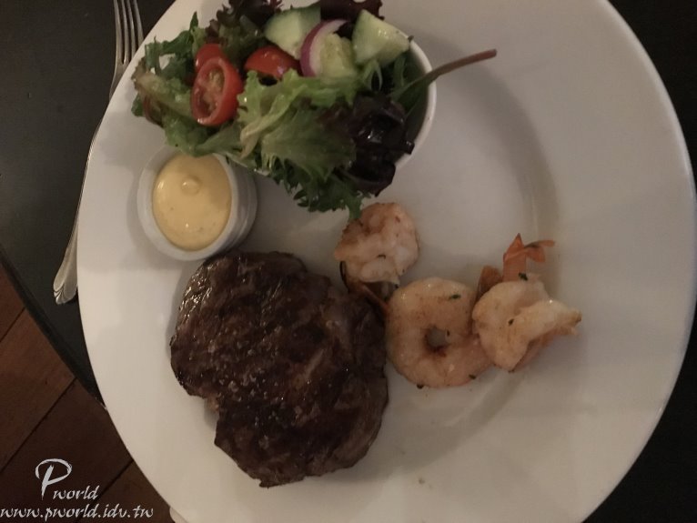 牛排本身還不錯 可以吃到牛肉本身的肉味 鮮蝦還可以 整個份量還算足夠(慢慢吃要有氣質) 服務品質也不錯 吃飽喝足該離開結帳了 還好 沒有想像中貴(AU119.6)