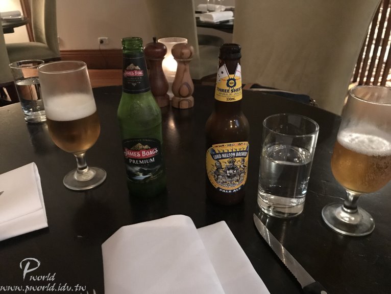 搭配晚餐的飲料我們選擇啤酒(什麼鬼啊) 主要是我們對於葡萄酒真的是不喜歡(不論紅酒白酒香檳等等) 我們沒有那麼有品味 請店員推薦雪梨當地的啤酒 連啤酒杯都先冰過 太驚訝了