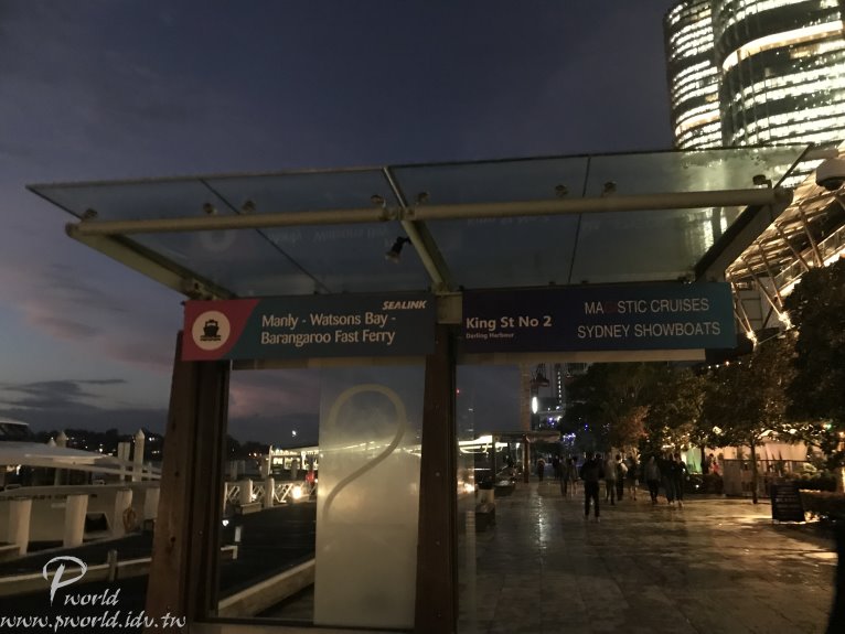 逛著逛著 想說既然都來到達利港了 那也可以從達利港搭乘渡輪到雪梨環狀碼頭(少走一些路) 搭船移動新的體驗 還能從海上看港灣大橋和雪梨歌劇院的夜景 不錯的選擇喔
