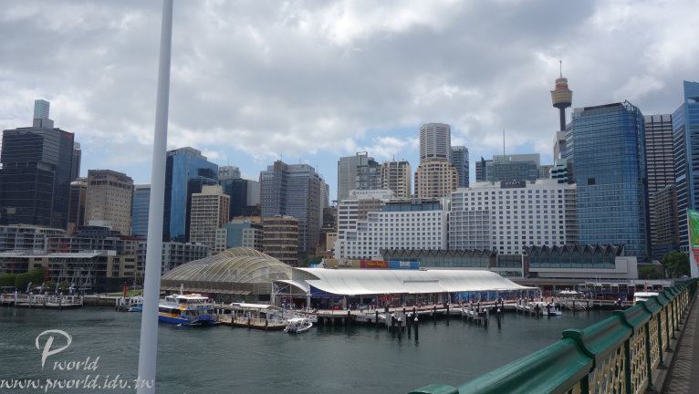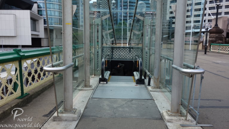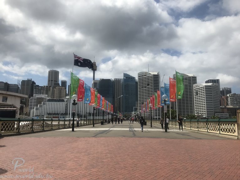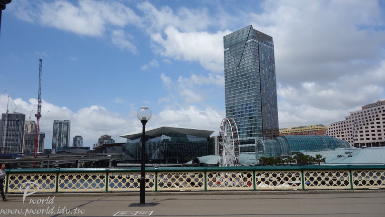 原來這裡有一座橋樑啊(Pyrmont Bridge) 這座橋樑很大 單單只作為步行的橋樑 太大手筆了吧 Pyrmont Bridge橫跨在達利港的Cockie Bay(科克灣) 原來以前橋上還有懸吊的單軌電車在跑(已經拆掉了) 難怪寬度會這麼寬 而且 神奇的是 這座橋的中間部分還可以旋轉 為的是讓高度過高的船隻可以通過 很神奇吧