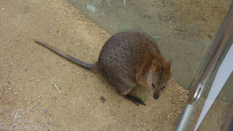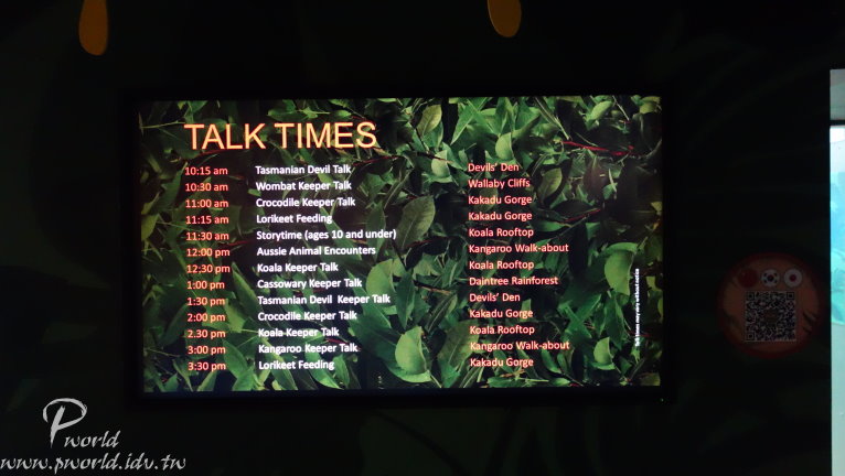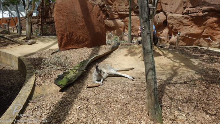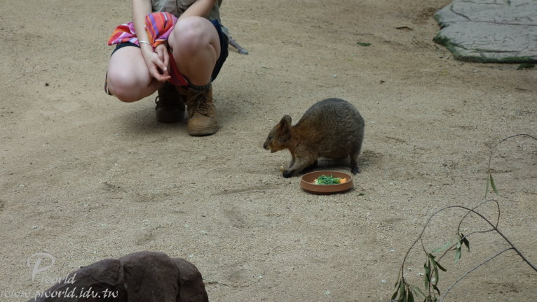所以不會看到什麼老虎、大象、長頸鹿等等 動物園內有一塊半戶外的區域 在固定時段中會有一些動物介紹 這個區域範圍內是簡單用繩索隔開而已 圍起來的區域內有放養袋鼠(都不怕跨過繩索)