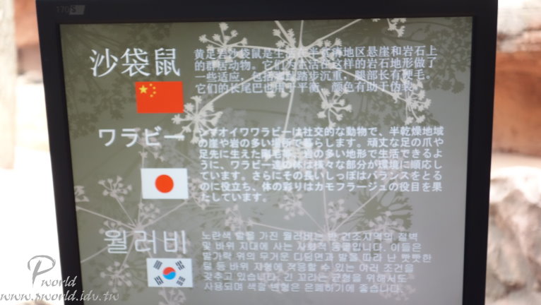 把捕食者和被捕食者放這麼近 是想嚇誰啊 園內的設計盡量接近動物生活的環境 讓牠們自在生活(當然是盡量啦) 在每一區都有詳細的告示牌解說 中、日、韓三種語言都有