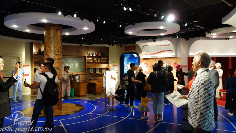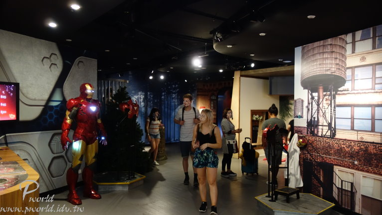 還滿多人來參觀的 不知道是不是跟我一樣的想法(應該不可能) 來蠟像館參觀 看了這麼多的蠟像 心裡會想 為什麼 就為了拍照嗎 如果是已過世的名人、或是不存在的人(鋼鐵人) 那倒也還算正常(正常嗎) 但是很多蠟像不是都還是現存的明星、名人 當然啦 也不是隨時都可以和名人拍照 哪 和蠟像拍照的理由是? 基本上除了純粹觀賞、拍照外 到後面區域時還有一區比較特別 可以和蠟像有一些互動 在地上指定位置上擺姿勢就會有一些聲光效果 拍照效果更好 有一點特別