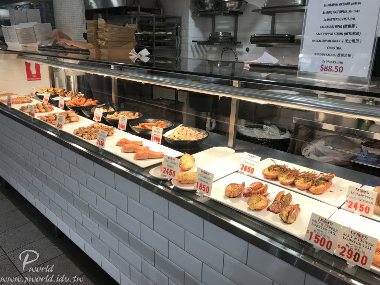 海鮮店必備的水族箱 裡面一定會有的大龍蝦 而且這裡還有少見的澳洲皇帝蟹(真的很少見)