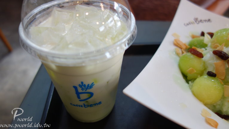 caffe bene 這也是一家咖啡店 可惜 我們對咖啡沒有多大興趣 哈密瓜冰分量跟昨天的差不多(可是就不用自己挖了) 雖然份量差不多 但是價錢就貴了一點169000越幣(約242元) 另外一杯哈密瓜汁89000越幣(約128元)