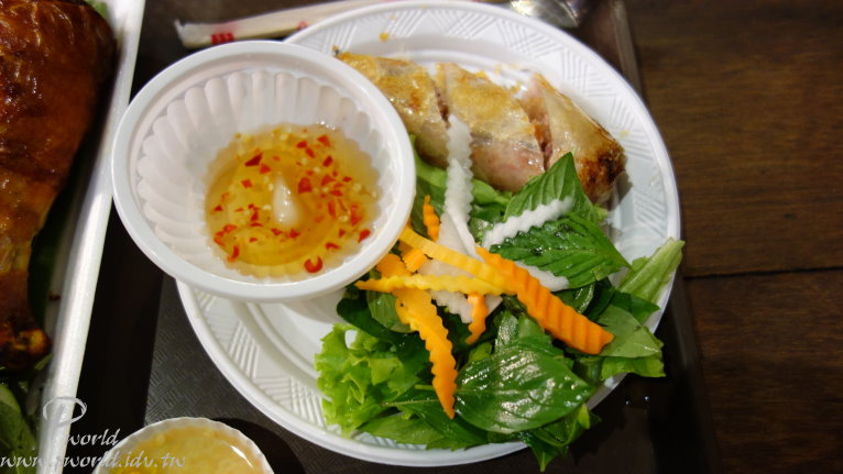 炸春捲配上酸酸甜甜的醬汁再加上搭配的蔬菜 非常越南的口味 不過春捲的價錢就滿貴的 才一根而已 一份30000元(約43元) 另外當然一定要配上超大杯甘蔗汁 讚啦!